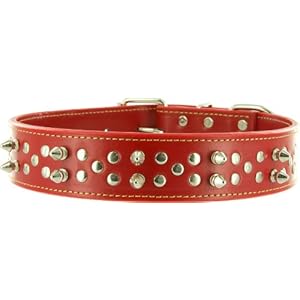This Best Selling Kakadu Pet Punk Pooch Leather Studded Dog Collar, 1 1/2" x 27 1/2", Red tends to SELL OUT VERY FAST!!