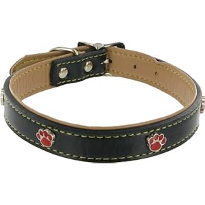 Kakadu Pet Paw Print Leather Dog Collar, 1" x 21 1/2", Black